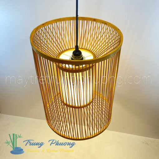 Thiết kế pha trộn giữa tre và vải, tạo ánh sáng dịu nhẹ, sang trọng. Đèn được làm thủ công, bền đẹp theo thời gian. Thích hợp treo trong phòng ngủ hoặc phòng ăn. Tạo cảm giác gần gũi nhưng vẫn tinh tế trong từng chi tiết